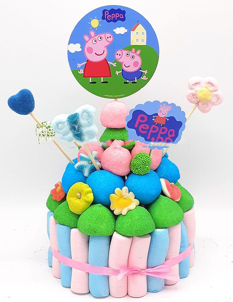 Preciosa tarta de chuches para regalar, darte un antojo o complementar tu evento con un toque muy dulce.